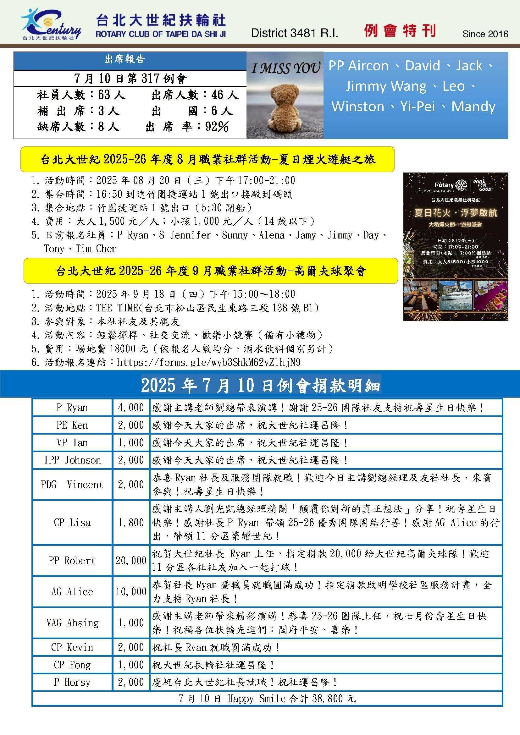 7/31 (四) 第 318 次例會圓滿落幕![]()