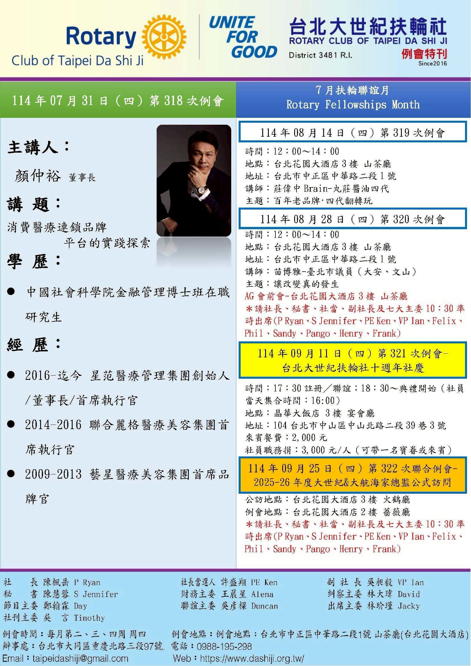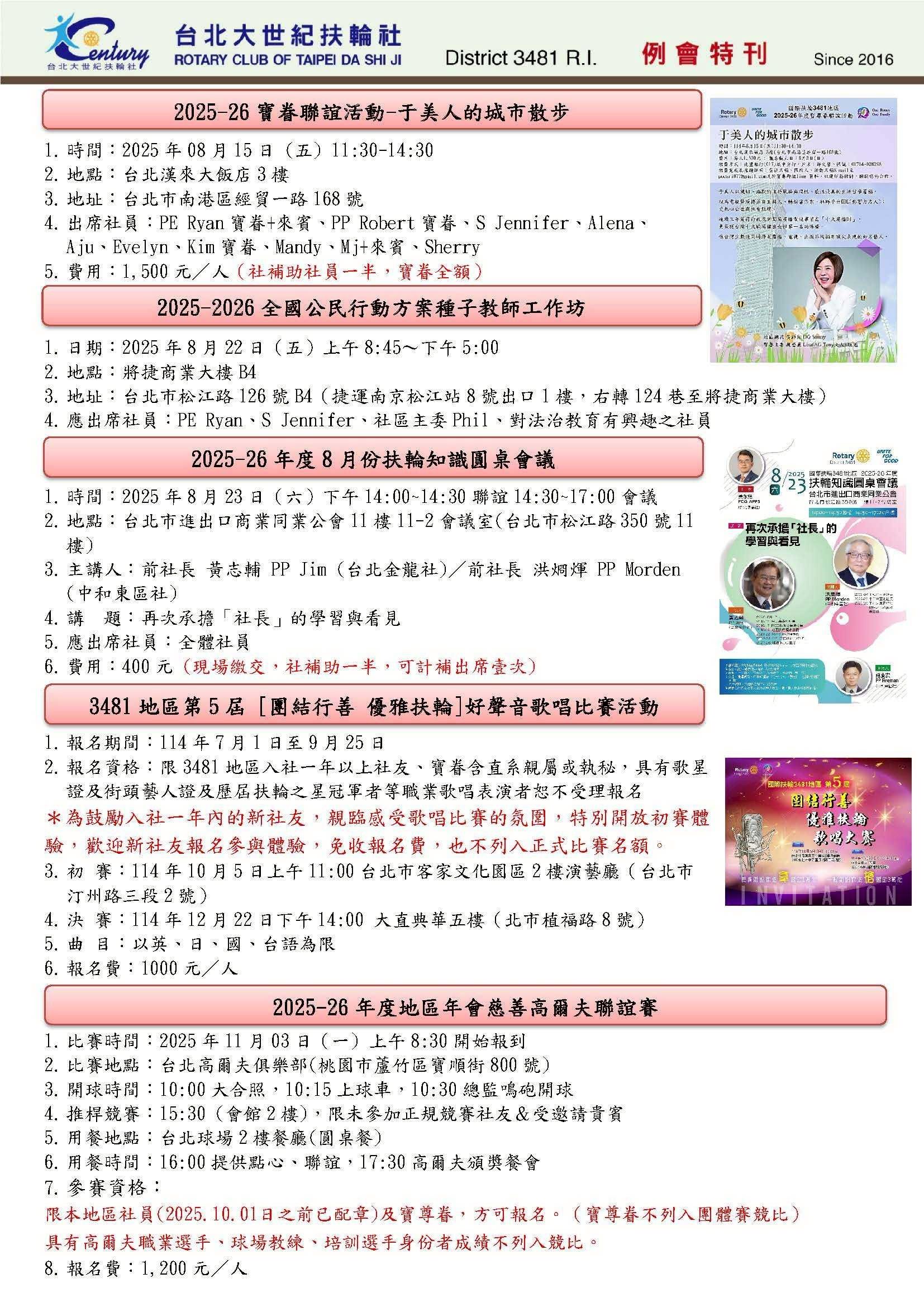 接下來8-9月大世紀有3次例會,敬邀大家一同參與~