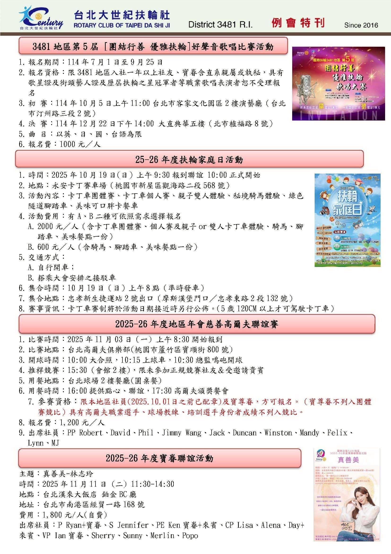 國際扶輪 3481 地區第11分區聯合社區服務 - 大世紀「台北啟明學校 - 扶輪傳愛 夢想起飛 - 攜手醒吾餐旅伴北名學子 共學互助參與 開啟多元職涯」感恩暨聯誼會